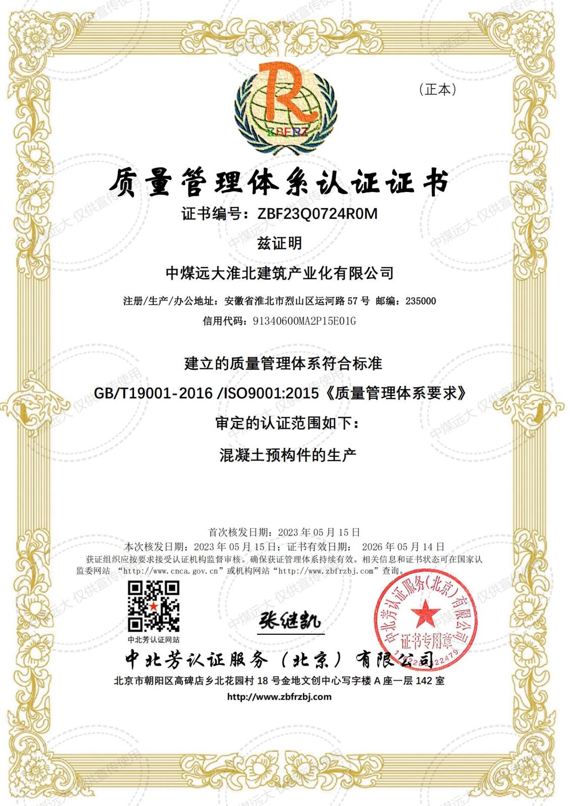 質量管理體系認證證書