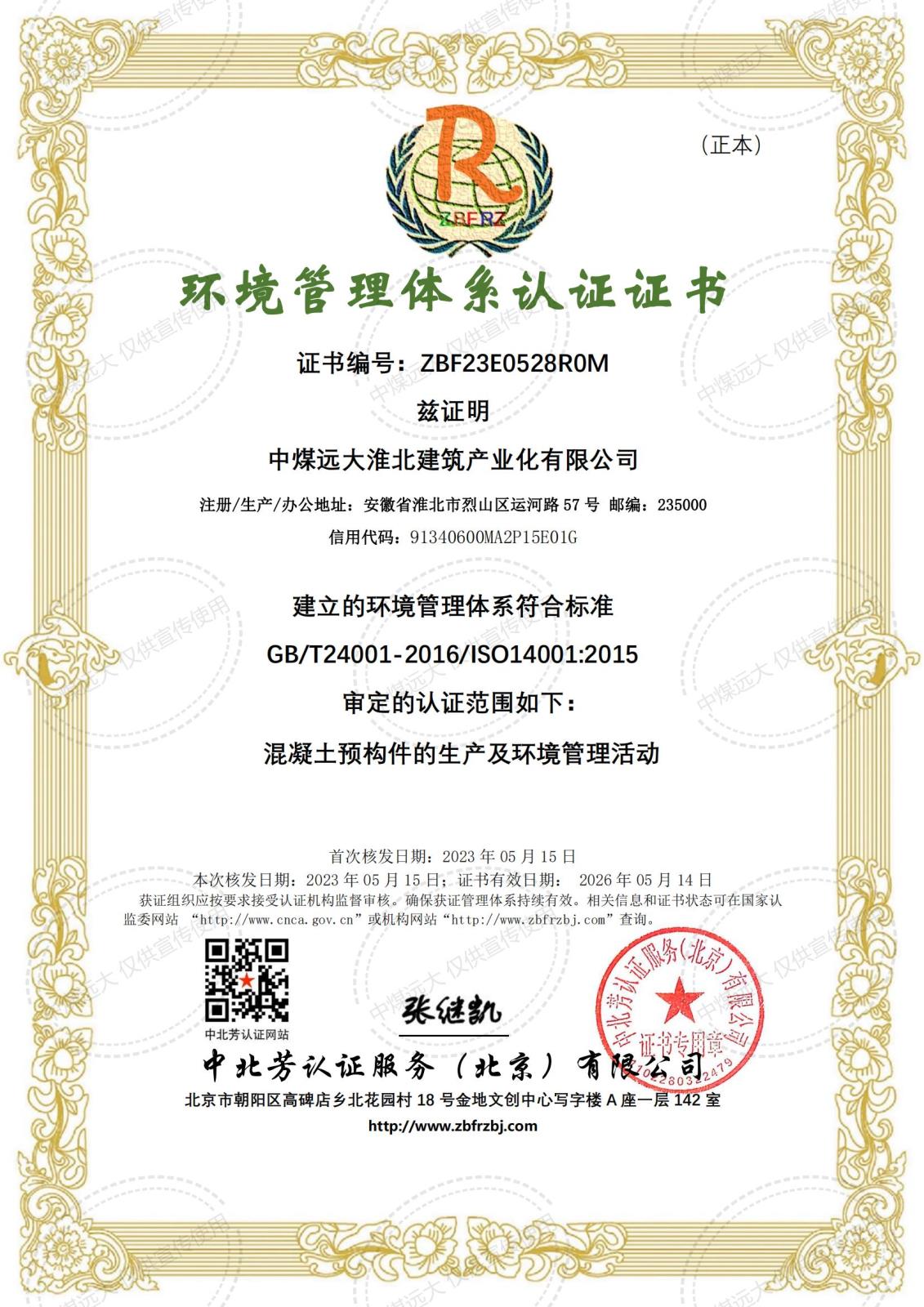 環境管理體系認證證書